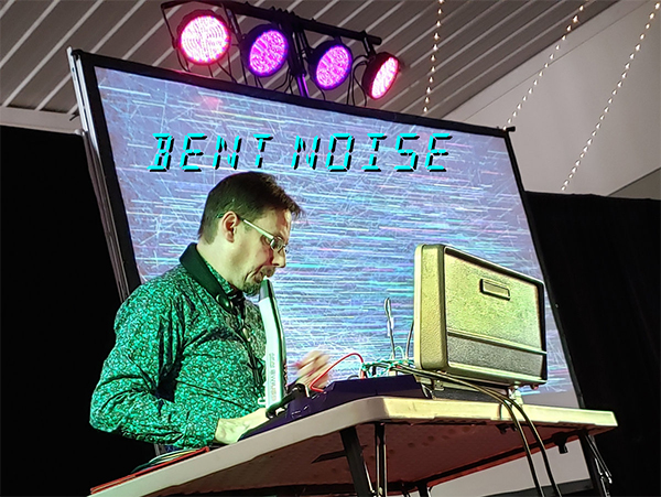His obsession is experimenting in circuit design and circuit bending to generate interesting sounds. The Noisy Alien Communicator (NAC) circuit used in past performances is documented and illustrated in a science fiction short story collection entitled The Noisy Alien Communicator: and The Visible Spectrum. Past performances are available at https://linktr.ee/BentNoise.